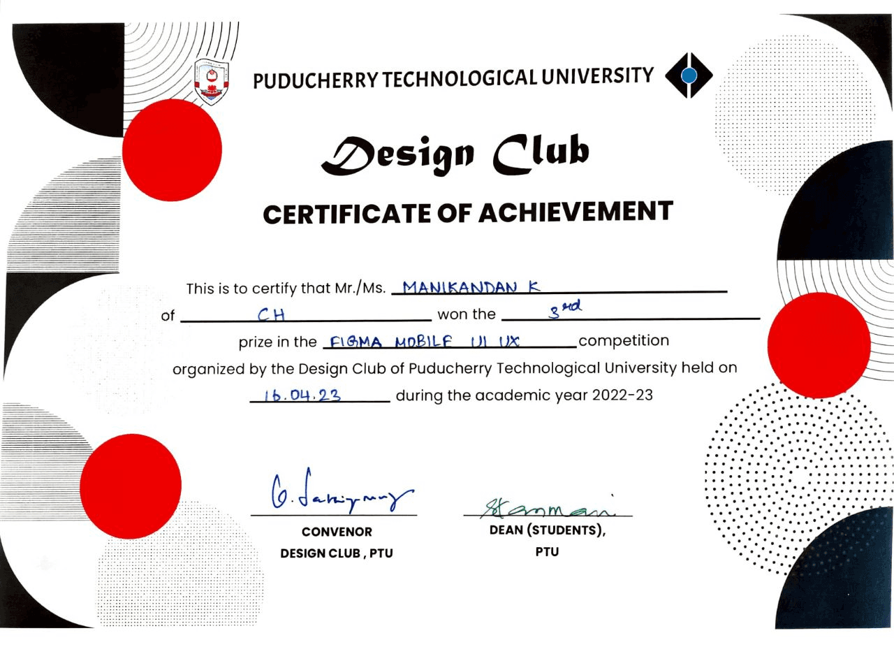 π This project was undertaken for the College Design Club Competition organized by Pondicherry Technical University. I am proud to announce that my redesign of the Swiggy app won the 3rd prize in the competition