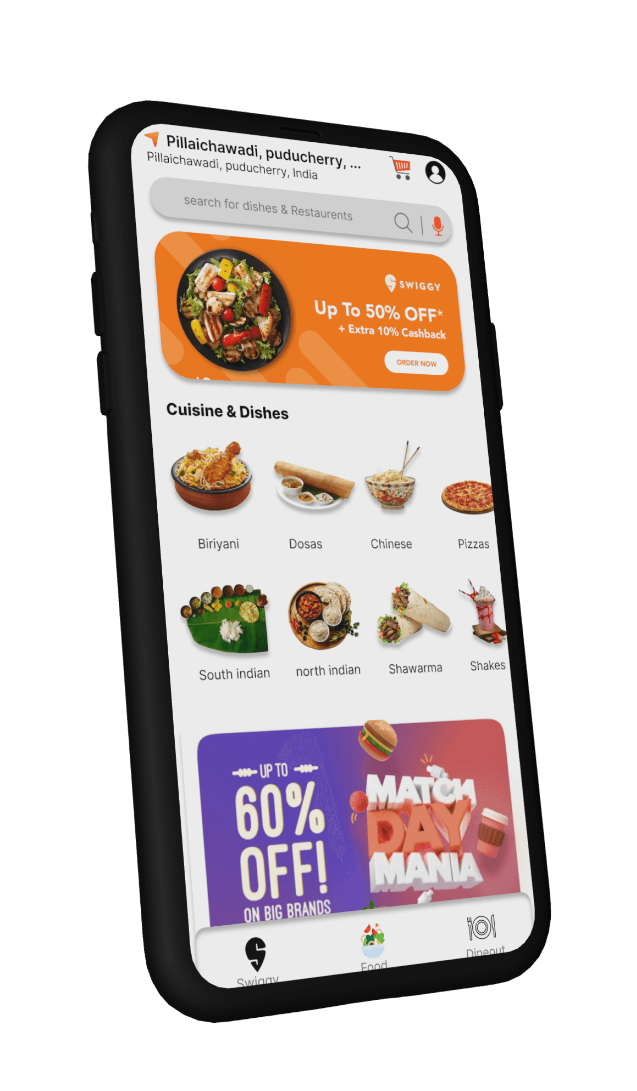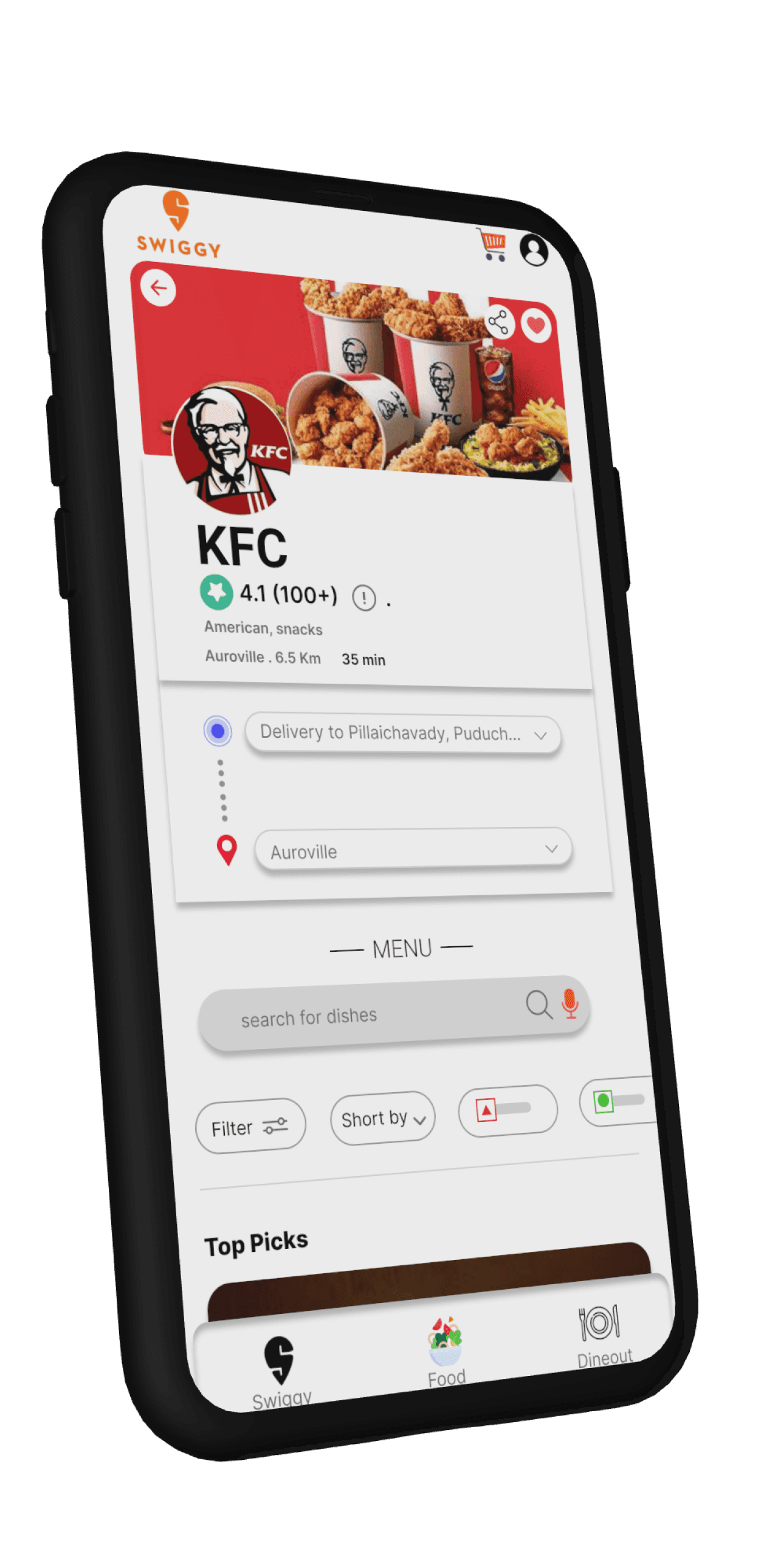- Search for food delivery apps specifically serving Pondicherry.