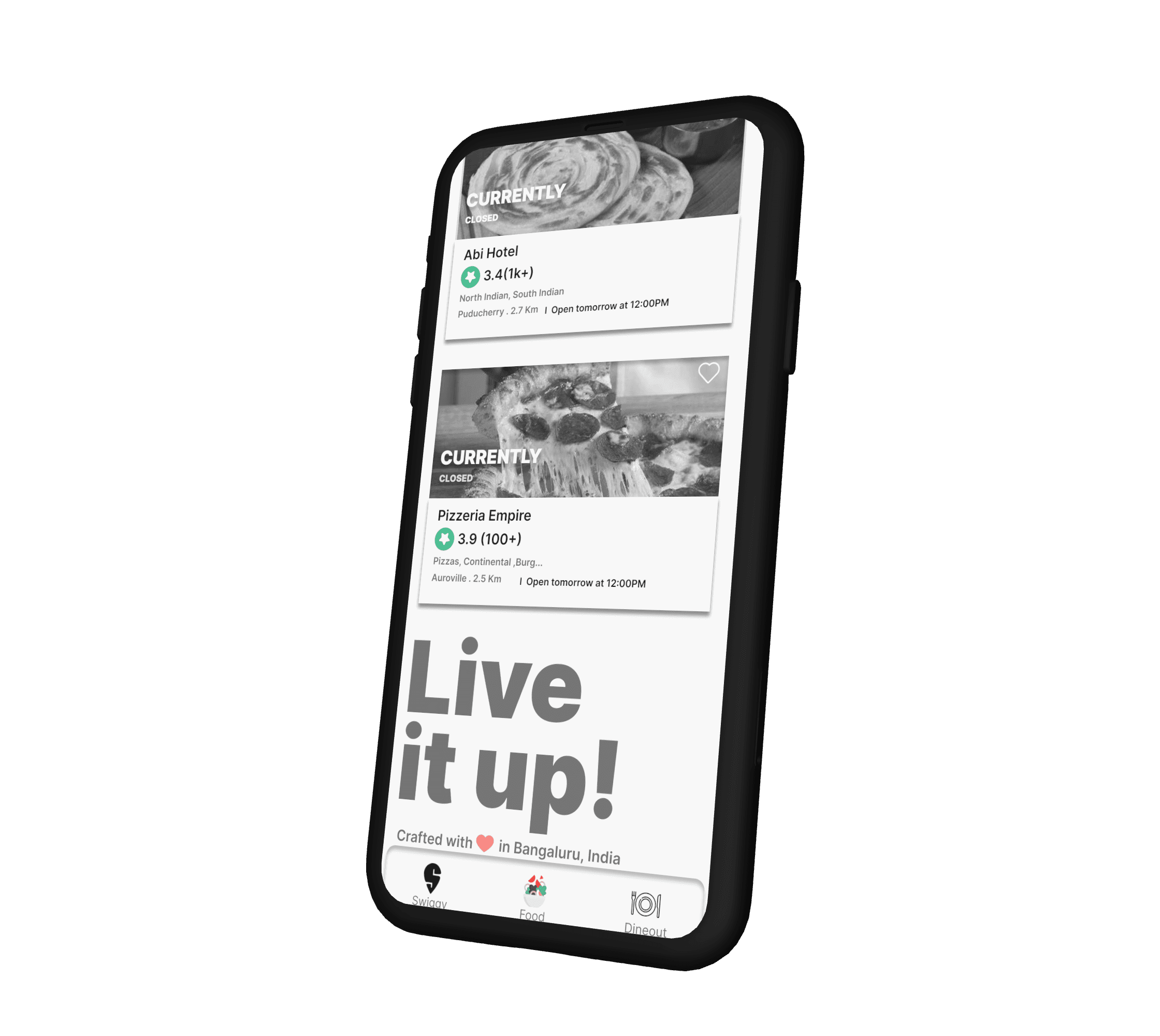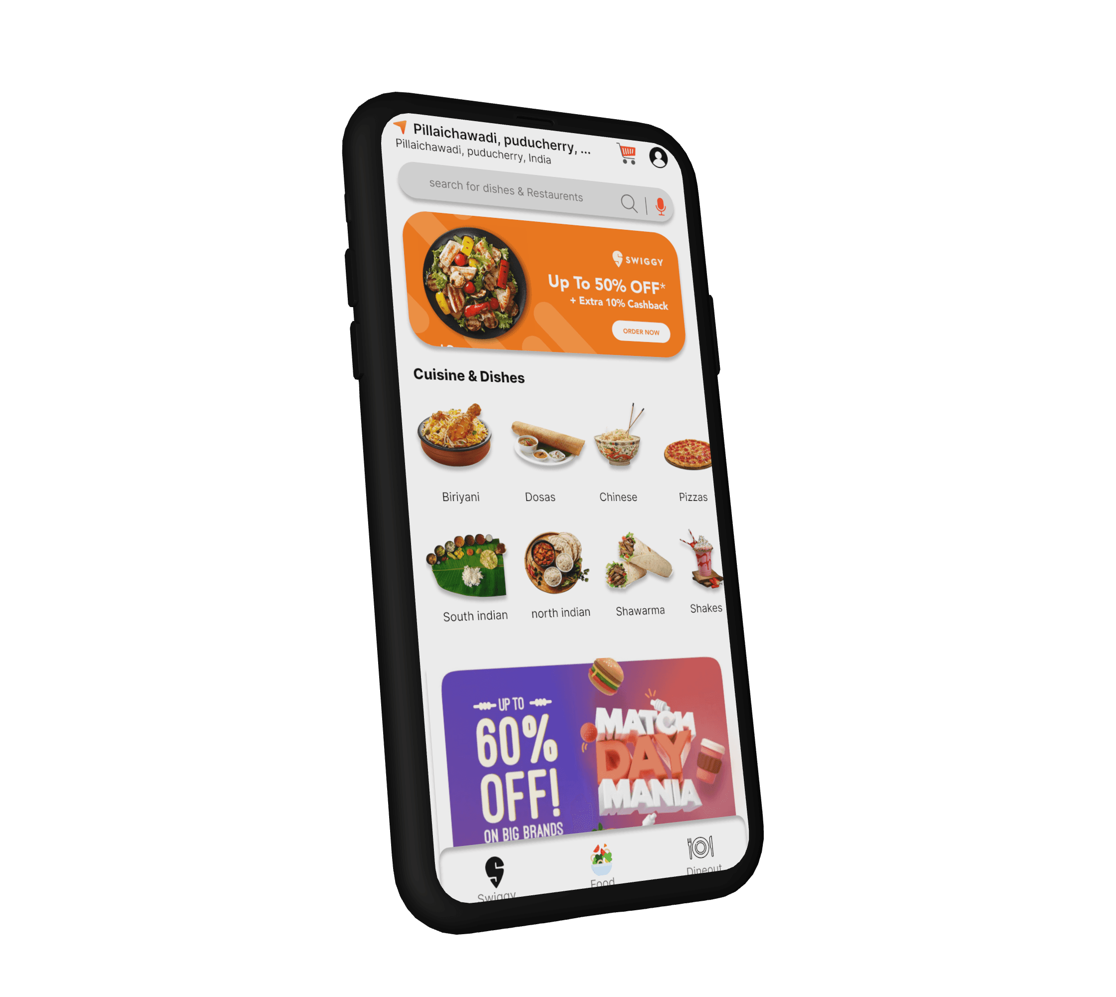 🏆 This project was undertaken for the College Design Club Competition organized by Pondicherry Technical University. I am proud to announce that my redesign of the Swiggy app won the 3rd prize in the competition
