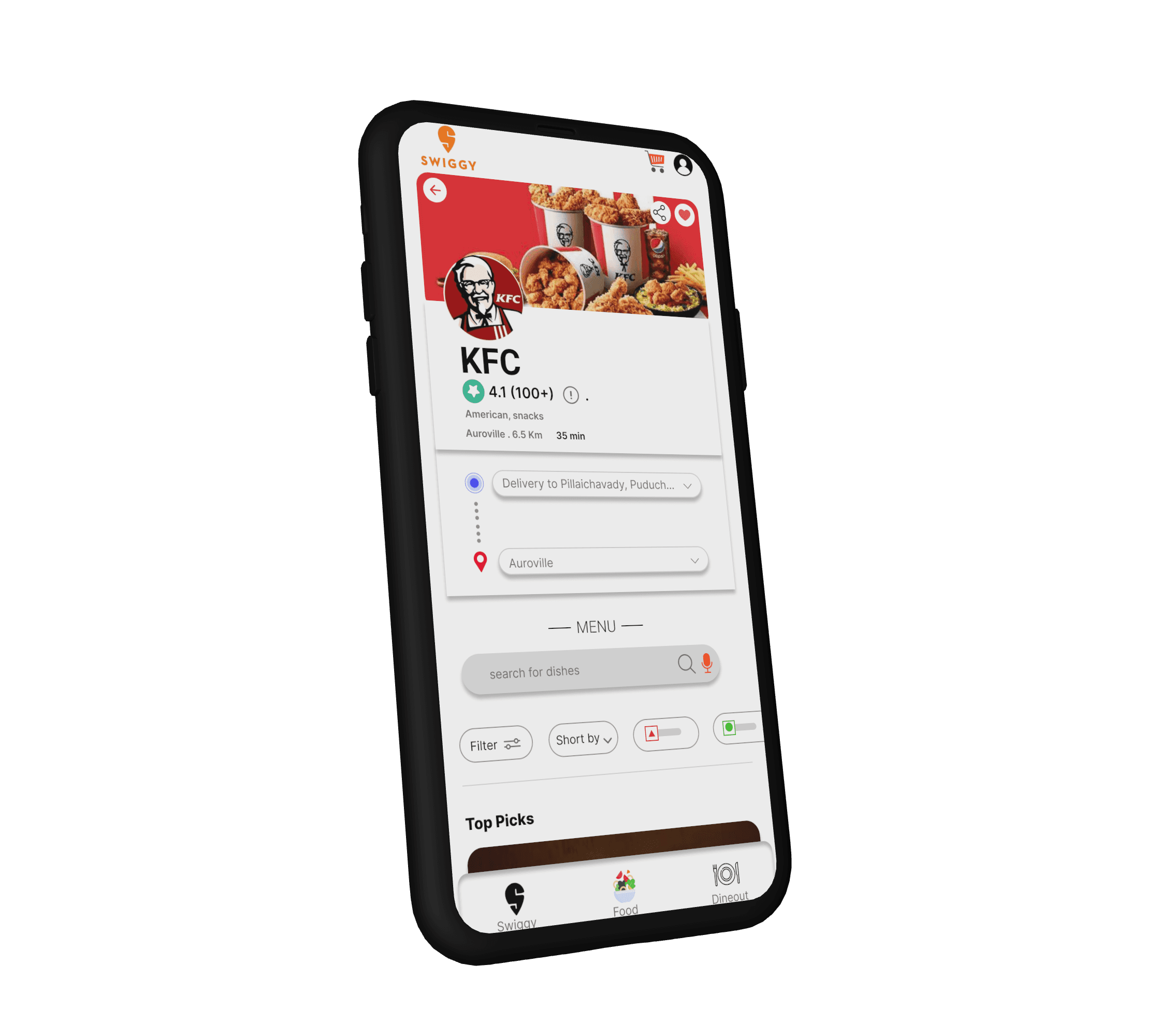 - Search for food delivery apps specifically serving Pondicherry.